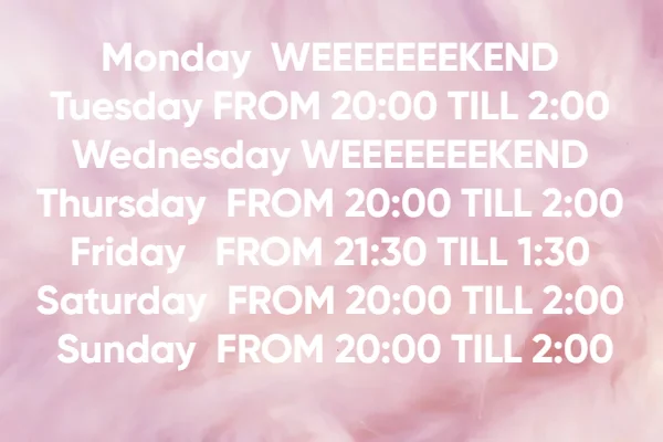 Saturday FROM 20:00 TILL 2:00